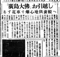当時原爆ヒロシマの絵葉書で全世界に紹介されていたり、ヒロシマを訪れる観光客は、観光バスの案内嬢の説明で必ず見物していく有名な大仏となっていた。昭和30年8月6日、日蓮宗増田管長をはじめ、各派合同の僧侶30名あまりが導師となり、市民数百名が参列する一大法要が営まれ原爆犠牲者や戦争の犠牲者の供養が盛大に行われた。